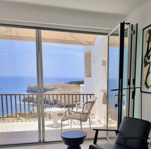 Lage: Das Meerblick-Appartment befindet sich in einem 4 Sterne Aparthotel in Es Forti/Cala Dòr. In ruhiger und bevorzugter Umgebung oberhalb des Meeres. Zur kleinen Badebucht Caló d’es Pou sind es ca. 400 m. In den Hafen von Cala D’Or sind es ca. 1,8 km.